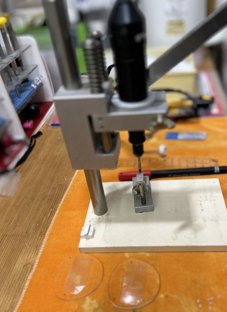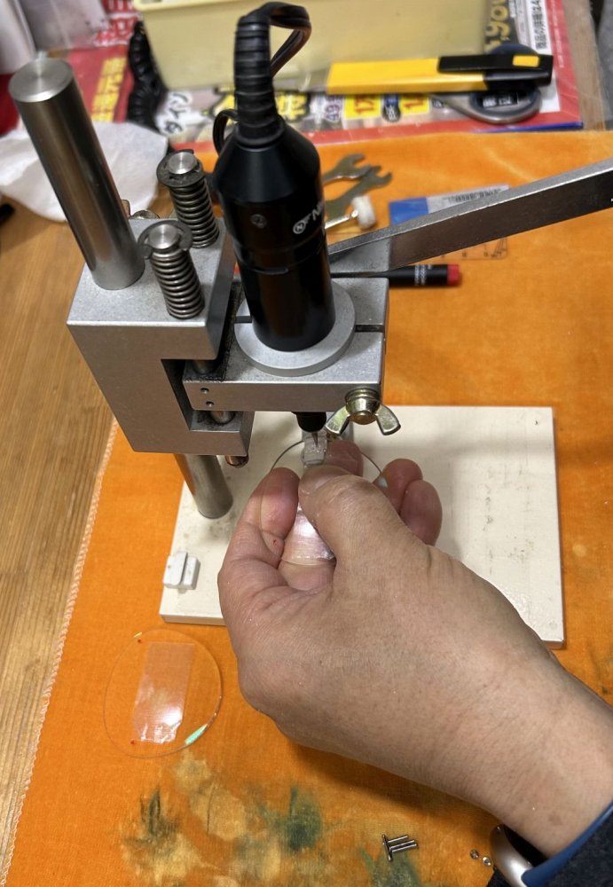 レンズを削り穴を空けるための印を付ける