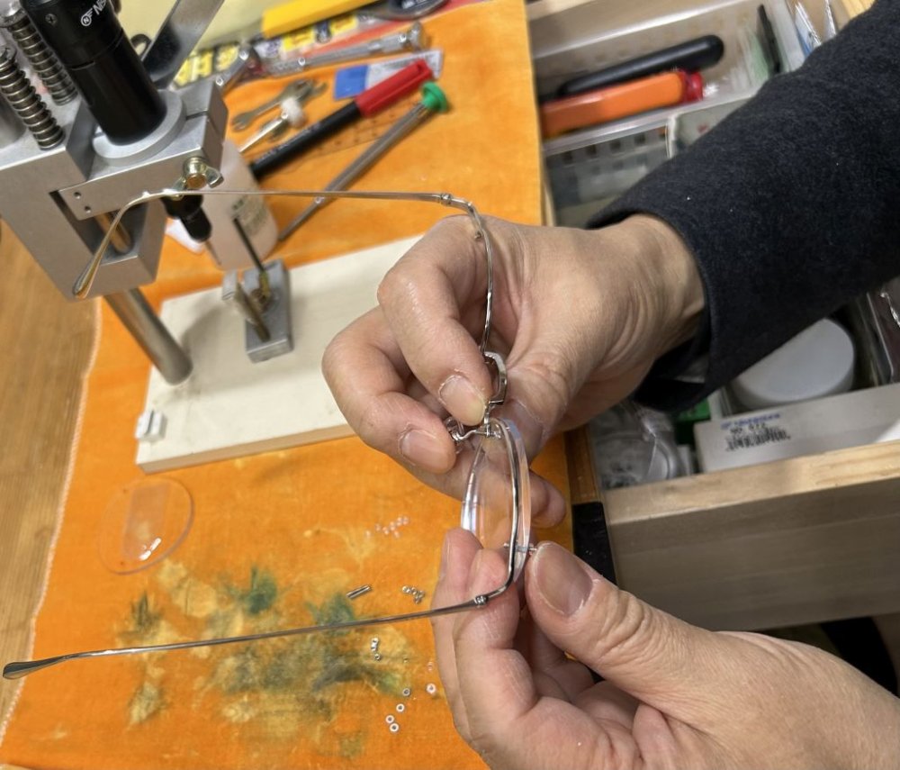 ふちなしメガネは手間がかかりますが職人技です。
